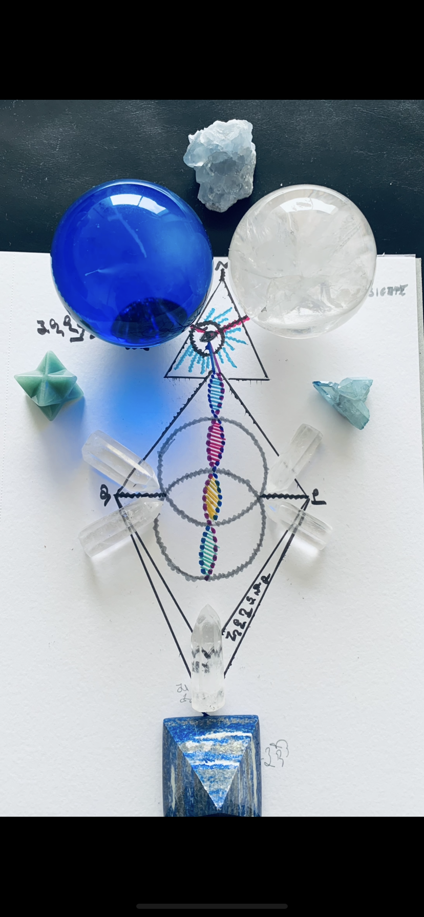 In a GeoEnergetic Crystal Healing session, I will create a personalized sacred geometry design specifically for you, tailored to address your unique needs and intentions. This intricate pattern will be combined with carefully selected crystals placed to amplify the energetic effects of the design.